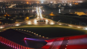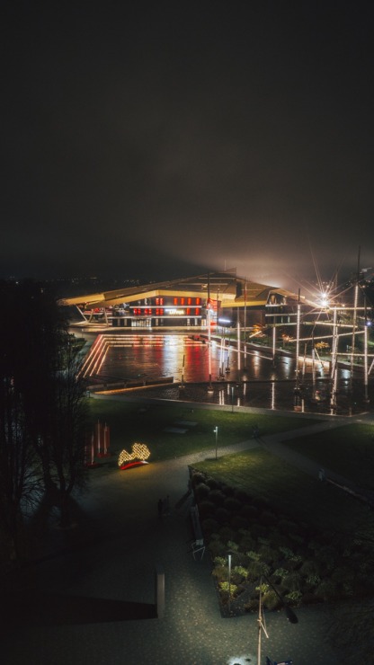 Svētku nedēļas vakaros Ventspils iemirdzas patriotiskās krāsās
