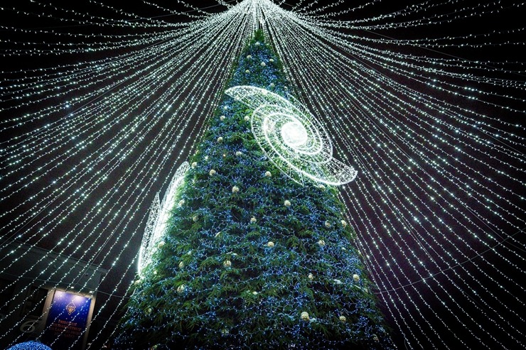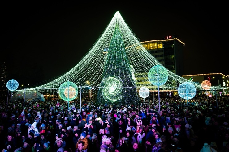 Daugavpils «Sapņu galaktikas» galvenā Ziemassvētku egle ir viena no skaistākajām Latvijā